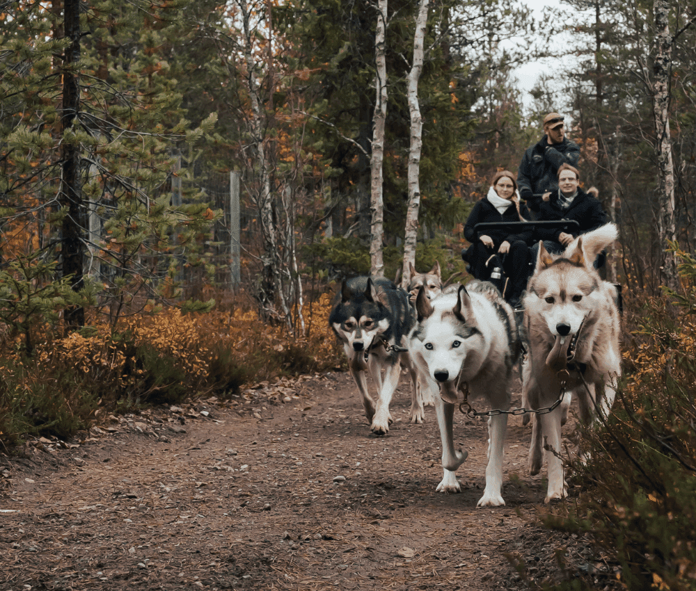 Seit Jahrhunderten befördern Hundeschlitten Menschen zuverlässig durch die Arktis – und heute erleben Sie dieses traditionelle Fortbewegungsmittel selbst! Bei diesem Herbstausflug werden Sie von echten Siberian Huskies auf einer Sommerkutsche durch unberührte Wälder gezogen. Sobald genügend Schnee liegt, können Sie den Schlitten sogar selbst lenken – nach einer kurzen Einweisung durch Ihren Guide.