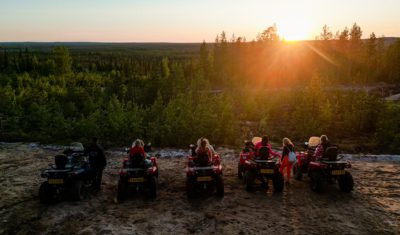 Nach einer kurzen Einweisung durch Ihren Guide starten Sie Ihre Quad-Tour in die stille Weite Lapplands. Sie fahren über verschneite Pfade bis an die Hänge eines Fjälls, wo Sie anhalten und zu Fuß den Gipfel erklimmen. Ob Mitternachtssonne oder Polarhimmel – der Ausblick ist unvergesslich. Am offenen Feuer hören Sie Geschichten aus Lappland, erfahren Wissenswertes über Nordlichter und genießen traditionelle Leckereien, bevor Sie zurückkehren.