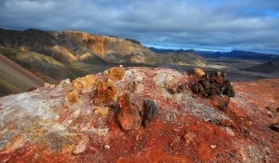 Das erste Ziel des Tages ist Ljótipollur, ein Explosionskrater mit Maar. In den farbenfrohen Liparitbergen von Landmannalaugar wandern wir durch Obsidianlava zu den Schwefelquellen an der Brennisteinsalda und haben eine Bademöglichkeit in einem warmen Bach. Fahrt auf der nördlichen Hochlandpiste „hinter den Bergen“ Fjallabak nyrðra durch die Vulkanspalte Eldgjá und weiter zur Unterkunft. 1 ÜN bei Kirkjubæjarklaustur.