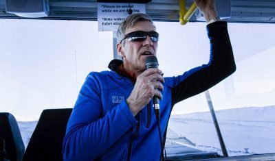 • Sie fahren ab dem Basecamp in Gletschertrucks zum Eistunnel auf die obere Gletscherkappe. Im Sommer dauert die Fahrt ca. 30 Min. und im Winter ca. 60 Min