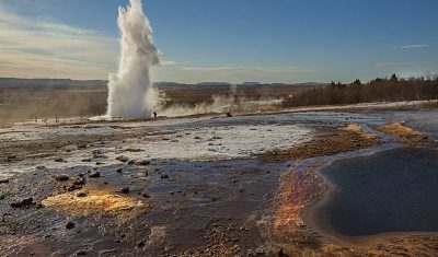 Fahrt über den Lavapass Þrengslin zur Mündung des Gletscherflusses Ölfusá. Beim Fischerdorf Eyrarbakki kommen Sie ins Vogelschutzgebiet des isländischen Vogelschutzvereines, wo Sie Sterntaucher, Schmarotzerraubmöwen, Singschwäne, Alpenstrandläufer, die Große Raubmöwe und Basstölpel sehen. Fahrt ins Springquellengebiet am großen Geysir und weiter zum mächtigen Wasserfall Gullfoss (Merline, Kolkraben und Steinschmätzer). Weitere Vogelbeobachtungen am Fluss Tungufljót, wo Sie den Regenbrachvogel, isländische Uferschnepfen und viele weitere Arten von Sumpfvögeln sehen. 1 ÜN in der Gegend. (Ca. 150 km.)