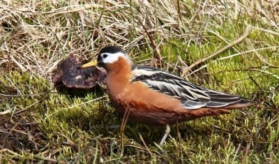 Fahrt durch die unbewohnte Küste an der Nordseite der Bucht Breiðafjörður, wo man sehr gut Kragenenten beobachten kann. In dieser Gegend ist der Seeadler am ehesten zu sehen, wie auch Mantelmöwen, Kormorane und Gerfalken. Weiterfahrt über die Hochebene Laxárdalsheiði in die Fjorde Hrútafjörður und Miðfjörður. In der Gegend brüten viele Wiesenvögel, Entenarten und Schnepfen, wie z. B. Wiesenpieper und Bekassinen. Am späten Abend sehen Sie möglicherweise Sumpfohreulen. 1 ÜN in der Gegend von Miðfjörður. (Ca. 260 km.)