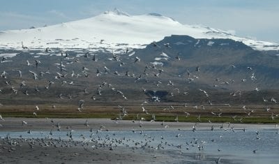 Über den Pass Jökulháls fahren Sie am Gletscher Snæfellsjökull entlang an die Südküste, wo Sie sich von pittoresken Hafenstädtchen und der schönen Landschaft verzaubern lassen. An der Küste können Sie zwischen den Fischerdörfern Arnarstapi und Hellnar an den schönen Basaltformationen der Vogelfelsen eine Wanderung unternehmen. Weiterfahrt zum Vogelfelsen Þúfubjarg und den Felsformationen von Lóndrangar sowie dem alten Anlegeplatz Dritvík. (Ca. 110 km.)