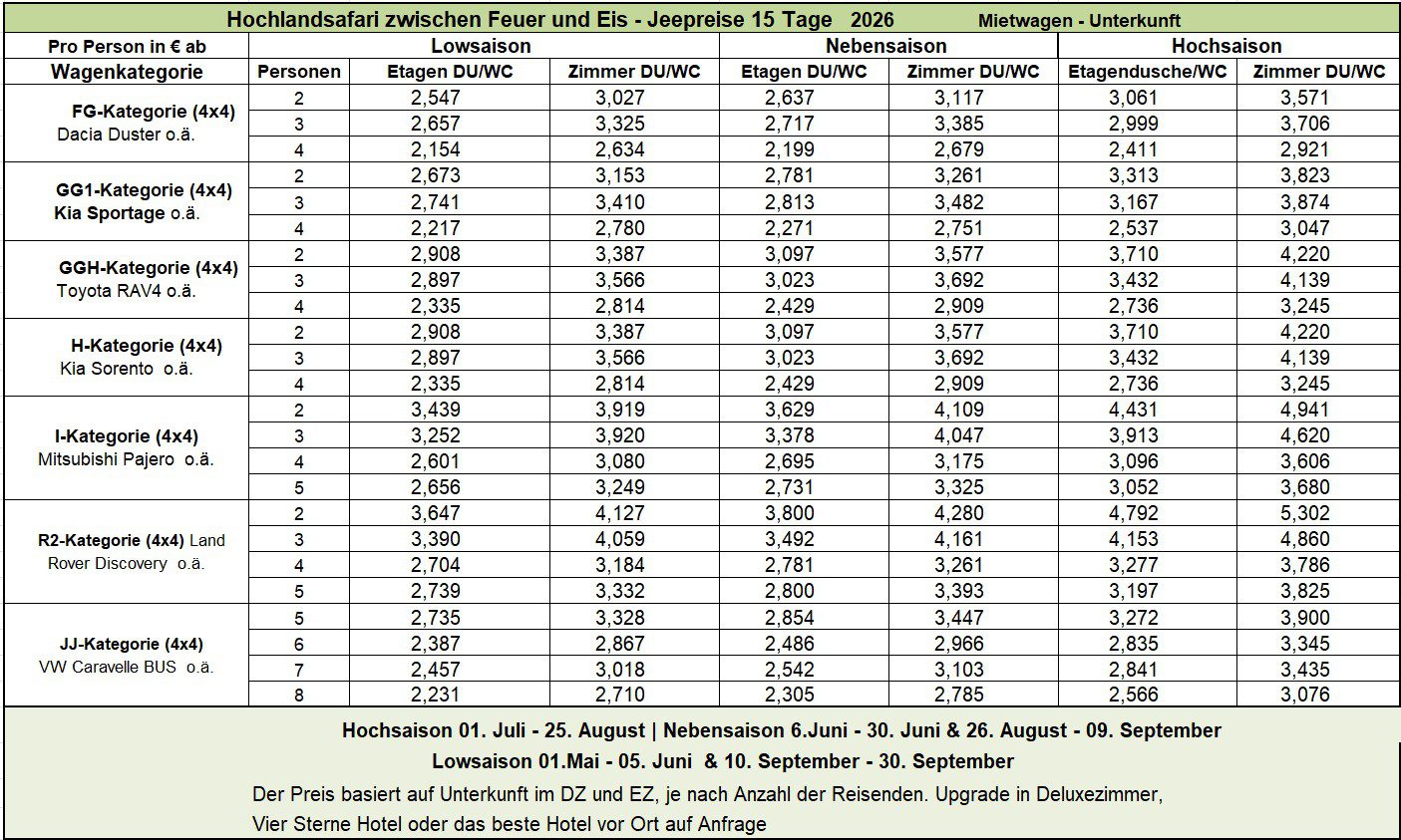Hochlandsafari zwischen Feuer und Eis | Jeepreise 15 Tage