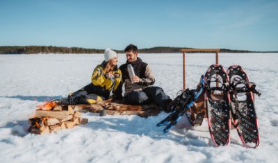 Schnallen Sie sich die Schneeschuhe an und begleiten Sie unseren Guide in die lappländische Wildnis! Entdecken Sie interessante Details über Flora, Fauna und alte nordische Lebensweisen. Unterwegs serviert Ihnen Ihr Reiseleiter heiße Getränke und lässt Sie die Stille des Waldes genießen.
