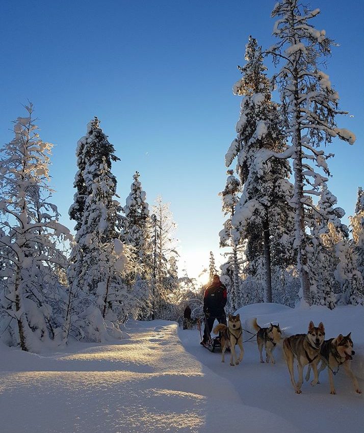 Begeben Sie sich auf eine unvergessliche Reise durch verschneite, uralte Wälder bei einer aufregenden Husky-Schlittenfahrt. Ihr Ziel: eine echte, bewirtschaftete Rentierfarm, wo die Zeit langsamer vergeht und Sie die Stille der Natur umgibt.