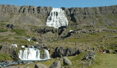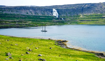 Am Vormittag schauen Sie sich den attraktiv gelegenen Fischerort Bíldudalur an, in dem es sogar ein Seemonstermuseum gibt! Mit eindrucksvoller Aussicht über den Arnarfjörður mit spitz von Gletschern zugeschliffenen Bergen geht es am Naturschwimmbad Reykjarfjörður vorbei zu einem der schönsten Wasserfälle Islands: dem Dynjandi (Fjallfoss). Ein Wanderweg führt zum Wasserfall hinauf. Durch einen Tunnel oder auf einer verschlungenen Straße fahren Sie weiter in den Fjord Dýrafjörður oder ganz bis in den größeren Ort Ísafjörður. 1 ÜN in der Ortschaft Þingeyri oder in Ísafjörður. (Ca. 120–180 km.)