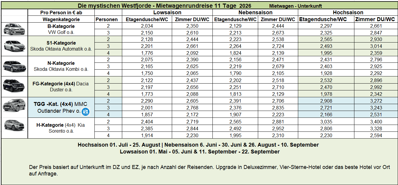 *In der Nebensaison weichen die Fahrzeiten der Fähre Baldur von den Zeiten in der Hochsaison ab was Auswirkungen auf den Reiseverlauf haben kann. In dem Fall stimmen wir das Programm gemeinsam mit Ihnen ab.