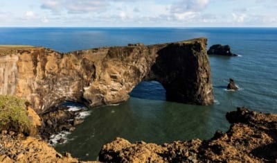 - Wir werden die Highlights der Südküste erkunden. Mögliche Ziele sind die Wasserfälle Skógafoss und Seljalandsfoss, der schwarze Sandstrand Reynisfjara und das Felsentor Dyrhólaey.