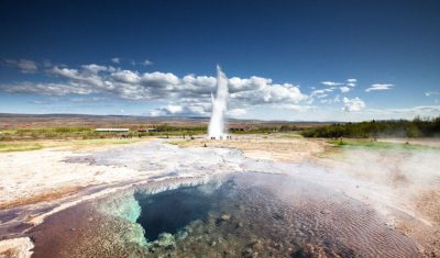 Die Tour beginnt um 08:00 Uhr mit der Abholung von Ihrem Hotel oder der nächstgelegenen Bushaltestelle. Wir fahren auf das Land und beginnen an der Secret Lagoon oder auch Geheimen Lagune, wo Sie im 38-40 ° C warmem Wasser perfekt entspannen können. Es ist eines der ältesten natürlichen Geothermalbäder des Landes und ein einzigartiges Erlebnis! Sie badne hier in der Nachbarschaft von heißen Quellen und sogar direkt an dem „kleinen Geysir“, der alle paar Minuten ausbricht. Anschließend bewundern wir den aktiven Geysir Strokkur inmitten von anderen Heißwasserquellen. Auch der alte Geysir, der Namensträger für alle Geysire kann bewundert werden, wobei dieser nur noch sehr selten ausbricht. Nur einen Steinwurf weiter entfernt befindet sich der majestätische Wasserfall Gullfoss, der über zwei Stufen fließt und von einigen Stellen aus betrachtet werden kann. Im Spätwinter ist dieser auch teilweise gefroren. Wir besuchen auch das Weltkulturerbe Þingvellir und wandern dort in der Schlucht Allmannagjá.