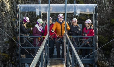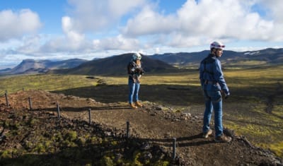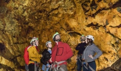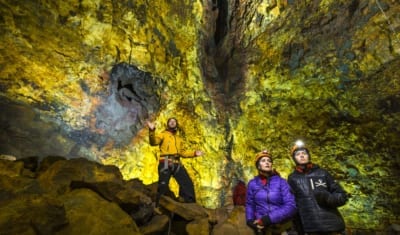 Das Abenteuer beginnt mit einer 3,5 km langen Wanderung (45-50 Minuten) durch ein schroffes Lavafeld bis zum Vulkaneingang. Dort werden Sie auf einem Kabellift in die Tiefe bis zum Grund der Magmakammer gelassen.