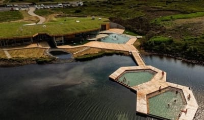 Das Thermalbad Vök ist ein neues und modernes Bad am See Urriðavatn in Ostisland bei Egilsstaðir, welches im Sommer 2019 seine Pforten geöffnet hat. Das Wasser des Bades kommt direkt aus heißen Quellen tief unter dem See. In der Vergangenheit bemerkten die Einwohner der Region, dass das Eis im Winter immer an der gleichen Stelle schmilzt. Daher kommt auch der Name Vök, was übersetzt „Eisloch“ bedeutet. Heute liefern diese Quellen das heiße Wasser für die gesamte Region, welches Trinkwasserqualität hat. Somit ist es in Island das einzige heiße Trinkwasser, was direkt aus einer heißen Quelle kommt. Das hauseigene Restaurant bietet traditionelle Gerichte mit Bio-Zutaten von Landwirten aus der Umgebung.