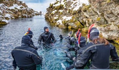 Eine professionelle Ausbildung oder ein Tauchschein sind hierfür nicht notwendig. Die Schnorchel-Abenteuer sind daher für jedermann geeignet und bieten ein besonderes Erlebnis, auch für erfahrende Schnorchler. Die Silfra Spalte liegt rund 40 Minuten mit dem Auto von Reykjavik entfernt und befindet sich inmitten des Þingvellir Nationalparks, der seit einigen Jahren zum offiziellen UNESCO Weltkulturerbe gehört. Bei Ihrem Schnorchel-Trip werden Sie jedoch vergeblich nach Fischen oder anderen Meeresbewohnern suchen, da diese sich nur äußerst selten in die Spalte verirren. Dafür sorgen aber Algen für ein wunderschönes Farbspektakel. Die grünen bis roten Algenfäden überziehen die Steinformationen der Spalte und sorgen so für eine einzigartige Atmosphäre und farbenfrohe Unterwasserlandschaft.